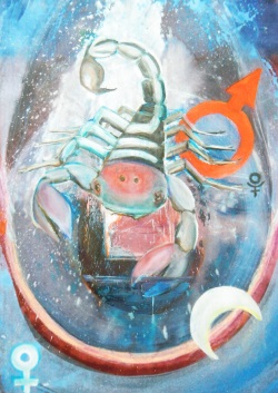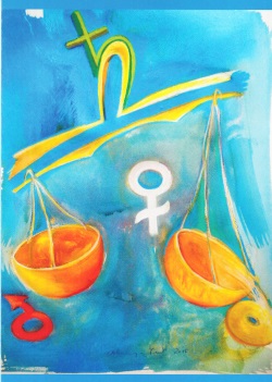 Die Künstlerin hat sehr eindrückliche Bilder zu den Tierkreiszeichen gemalt. Jedes Bild wird astrologische beschrieben. So kann man sich das jeweilige Prinzip verinnerlichen.